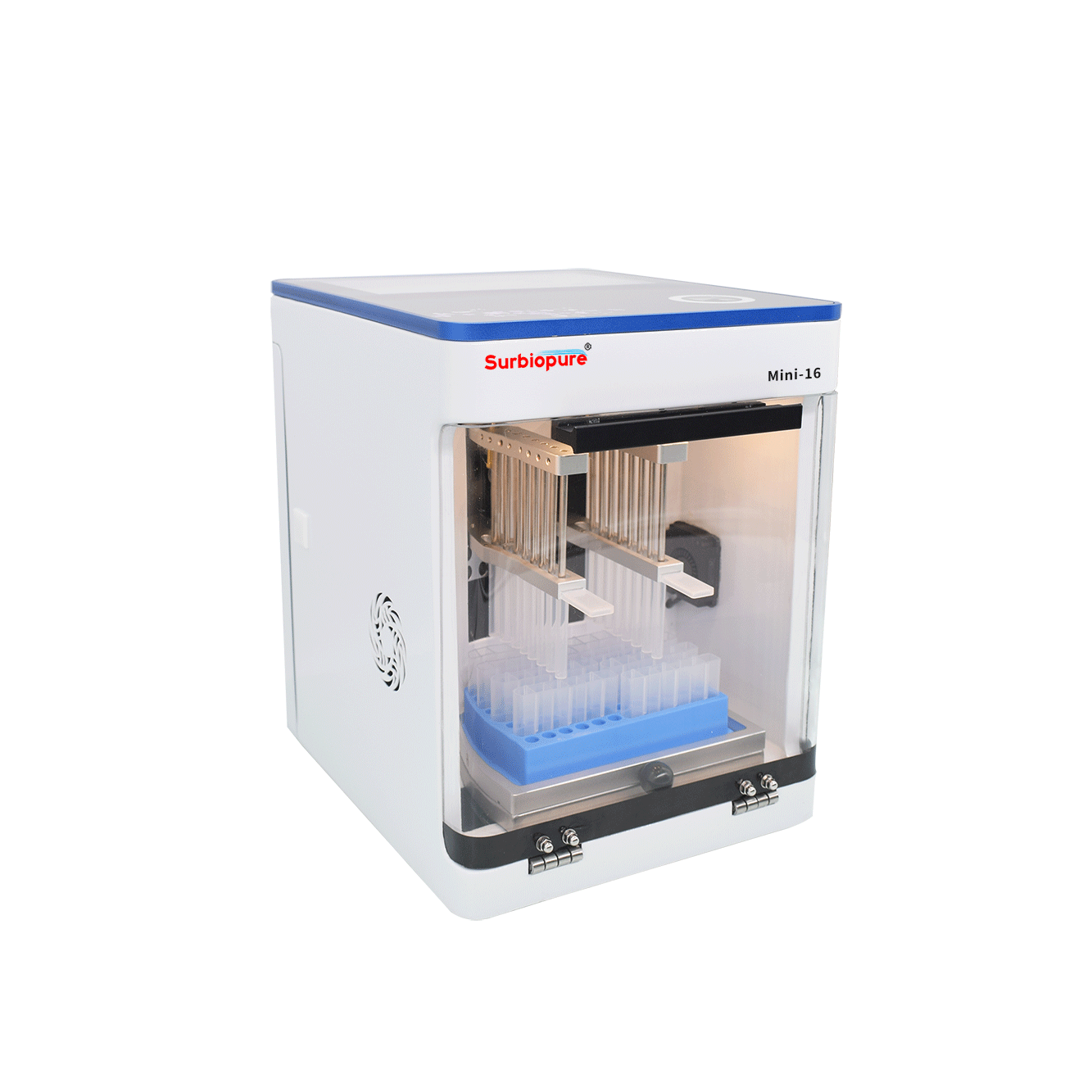 Mini-16全自動(dòng)核酸提取儀采用磁珠分離技術(shù),利用2.2ml深孔板、2.2ml試劑條、8聯(lián)磁棒套;搭配不同種類的磁珠法核酸提取試劑盒,最多可一次同時(shí)操作1-16個(gè)樣本,儀需9~45分鐘就可快速提取樣本中的DNA和RNA。 本系統(tǒng)通量靈活,可實(shí)現(xiàn)不同需求量的樣品提取,使用范圍廣;每次可同時(shí)提取1-16個(gè)樣品,配合單條試劑可實(shí)現(xiàn)1-8個(gè)樣品的任意通量同時(shí)提取;搭載7寸彩色觸控一體化操作界面,可自由編輯提取程序;配置負(fù)壓排氣系統(tǒng)和紫外燈消毒系統(tǒng),避免氣溶膠污染,安全可靠;尤其適合零散樣本的現(xiàn)場(chǎng)核酸提取,配合實(shí)時(shí)熒光定量PCR系統(tǒng),可輕松實(shí)現(xiàn)戶外現(xiàn)場(chǎng)樣本的即時(shí)檢測(cè)。Mini-16