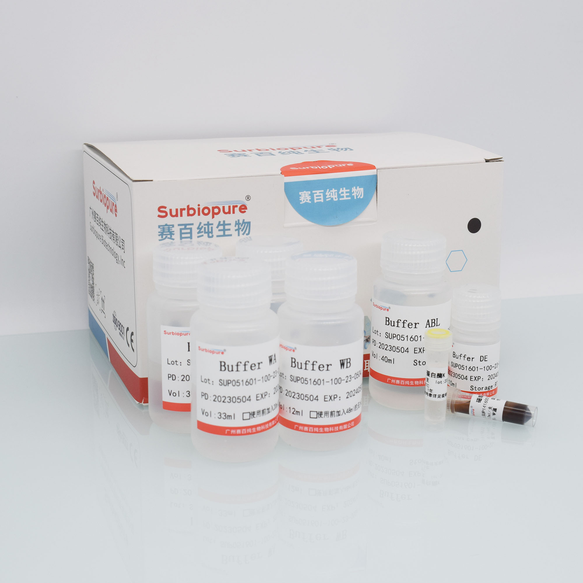 【產品名稱】細菌基因組 DNA 純化試劑盒(離心柱法)。 英文名稱:Surbiopure bacteria DNA Kit。 【包裝規(guī)格】50T/盒 100 T/盒 【適用范圍】各類革蘭氏陰性菌和陽性菌等。 【原 理】細菌樣本經過消化液處理后與裂解結合緩沖液混合,使得細胞破碎并將核酸釋放。離心柱中采用的硅基質材料為本公司特有新型材料,在裂解緩沖液中,能夠高效、專一吸附DNA,可最大限度去除雜質蛋白及細胞中其他有機化合物。提取的基因組DNA片段大,純度高,質量穩(wěn)定,可直接用于DNA下游實驗。041603